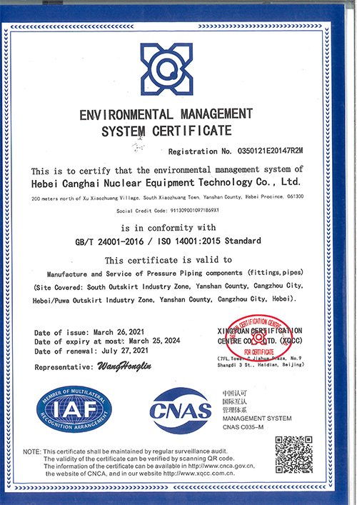 河北滄海環(huán)境管理體系認證證書(英文)